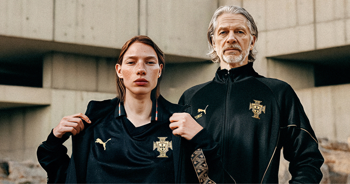 La divisa unisce due elementi principali: nostalgia e cultura calcistica moderna, in un mix artigianale di alta qualità e design audace e raffinato. I dettagli dorati richiamano il Pallone d'Oro vinto da Eusebio e la storia calcistico del Portogallo, offrendo anche un look potente e distintivo.